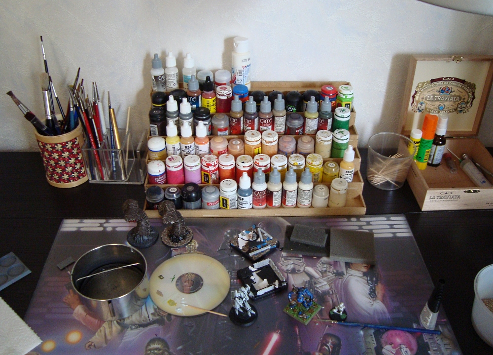 Below is a picture of my painting table now. I love how neat and organised it is, and how much space I now have to clutter…