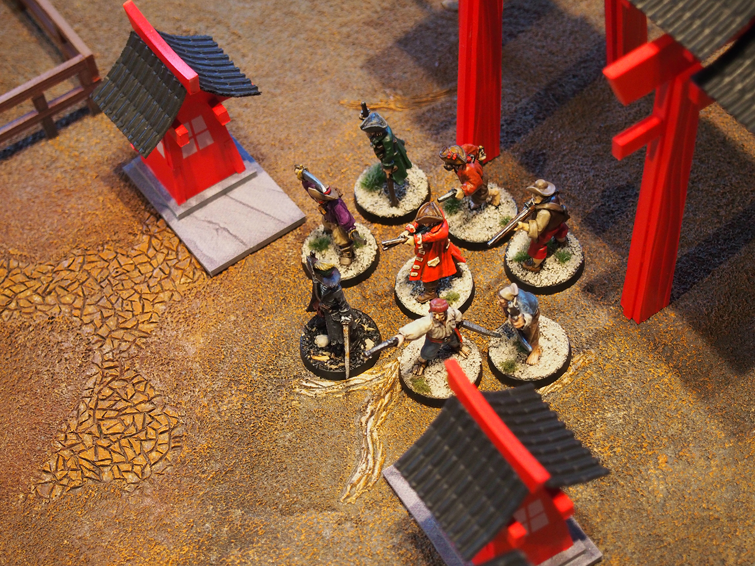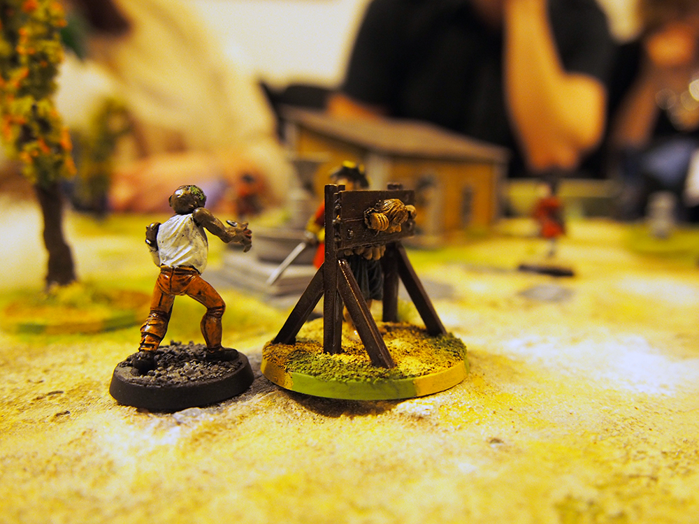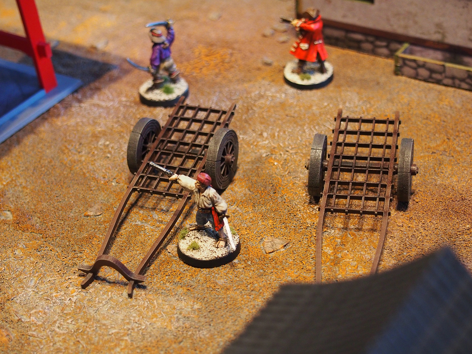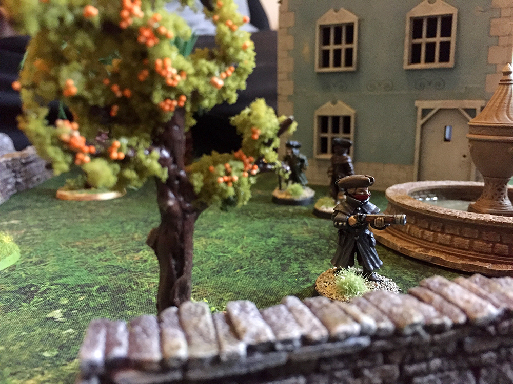 The game turned out to be wonderfully dramatic! The rebels managed to set five buildings on fire, but the increasing numbers of the planter’s side were grinding them down. The bodyguard did dramatically shift their allegiance, summarily shooting the other bodyguard in the back and killing them. The leader of the rebels was killed by a point blank pistol shot, while one of the female rebels went on a killing spree with her two-handed blade, cutting down three guards one after another. In the end, with the rebellion almost crushed, a lone rebel managed to sneak into the planter’s garden, and gunned down the planter with his musket. The deed done, the remaining few rebels escaped into the night, bloodied but victorious and led by their new leader, the former planter’s bodyguard. To be continued, maybe!