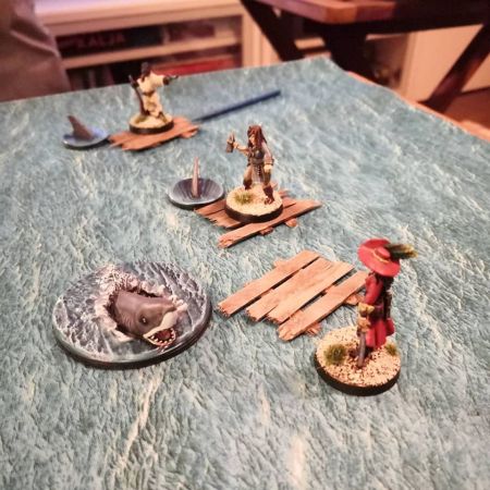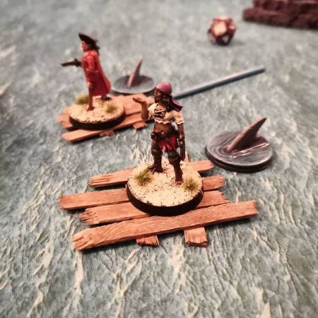 Nowadays, I put on a Halloween game every year, and 2019 was no exception (you can check out previous games by clicking on the Halloween tag). There’s obviously always some sort of horror theme, and this year I went loosely with sharks. The concept of the game was simple: a pirate ship had been wrecked and it was up to the survivors, floating on debris, to race to the shore. Unfortunately for them there were plenty of sharks about. Oh and the Kraken.