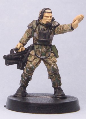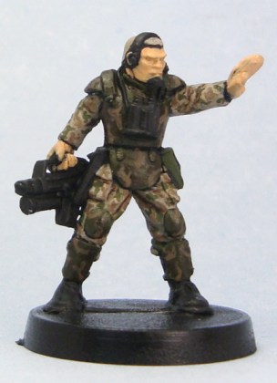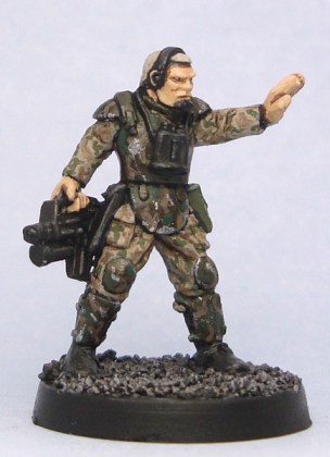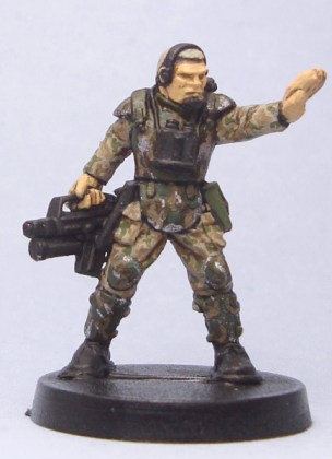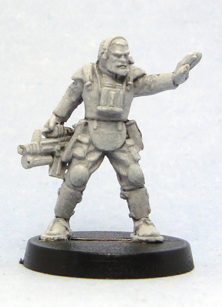 You can’t have a tutorial without a miniature to paint. As I posted earlier, I’ve picked Mark Copplestone’s scifi troopers (available from em4, Copplestone Castings and Mirliton) as my Colonial Marines. This particular miniature is a a trooper from em4.