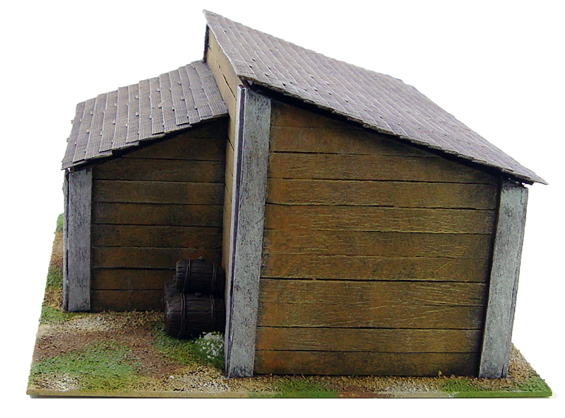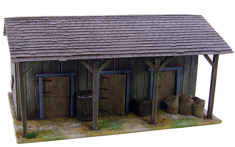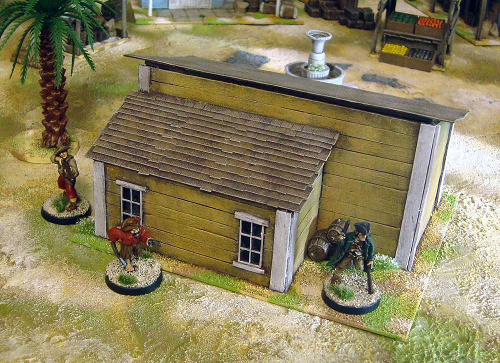 Another finished Warbases building, one of their range of modular, simple pieces. Now, when I say simple, I really do mean simple. The basic modular building is a featureless box with a slanted roof. Of course, this makes it perfect to modify, which is why I bought quite a few. I originally intended to make a Spanish Caribbean style town which is why I bought the original few. My vision changed, but I still wanted to use the buildings of course.