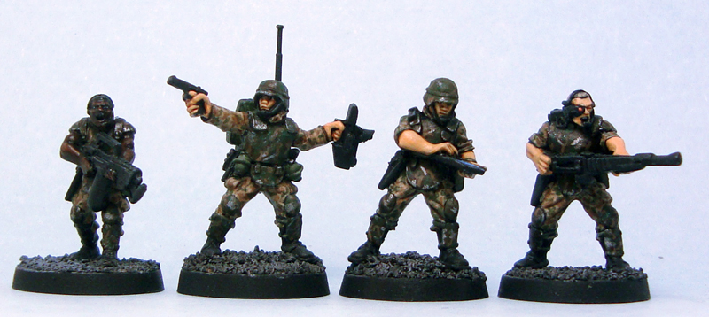 Here are the painted ones. Apone and Drake are from em4, while Crowe and Hudson are from Copplestone Castings.