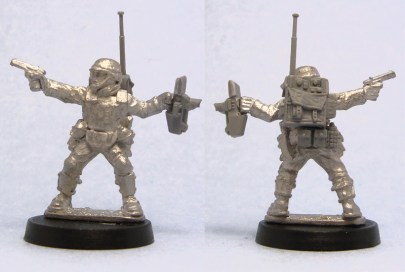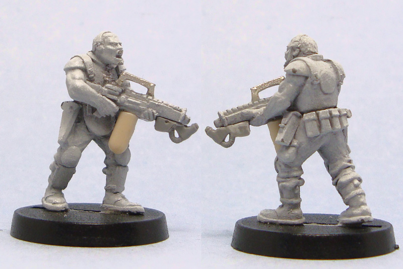 You can’t have a tutorial without a miniature to paint. As I posted earlier, I’ve picked Mark Copplestone’s scifi troopers (available from em4, Copplestone Castings and Mirliton) as my Colonial Marines. This particular miniature is a a trooper from em4.