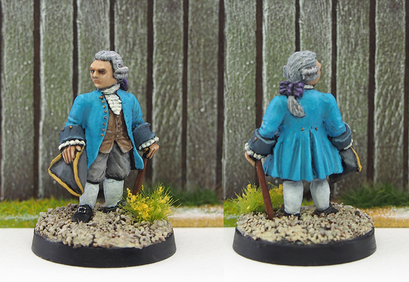 Some tutorials, some painting, some repainting, some trial and some error later I was surprised to have something I’m quite proud of! It looks like a tartan pattern to me and that’s what I was going for, so I’ll put this in the success column. Overall this was another fun mini to paint. Galloping Major miniatures are clean and pretty bulky, which makes them very painter friendly. I have a full set of 18th century sailors and I’m looking forward to painting up some more of them.