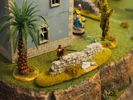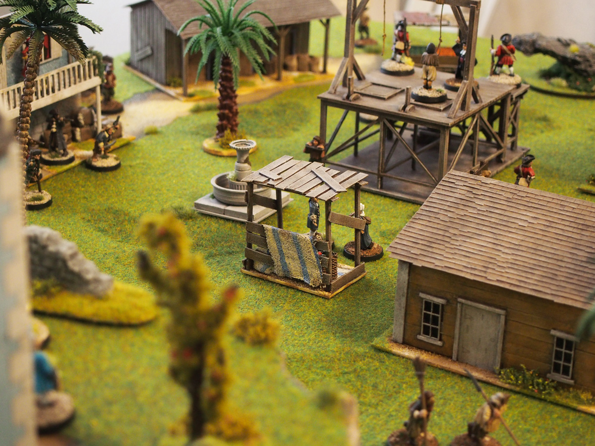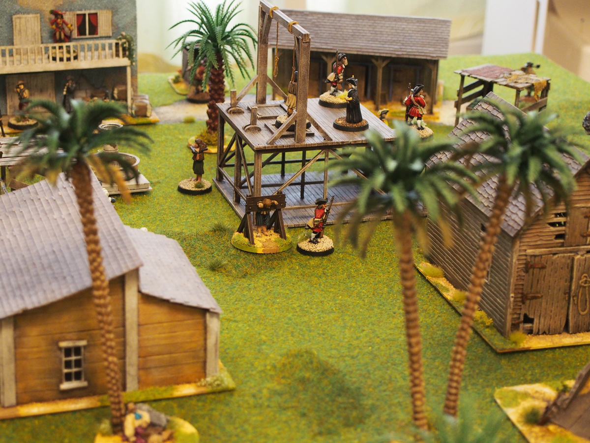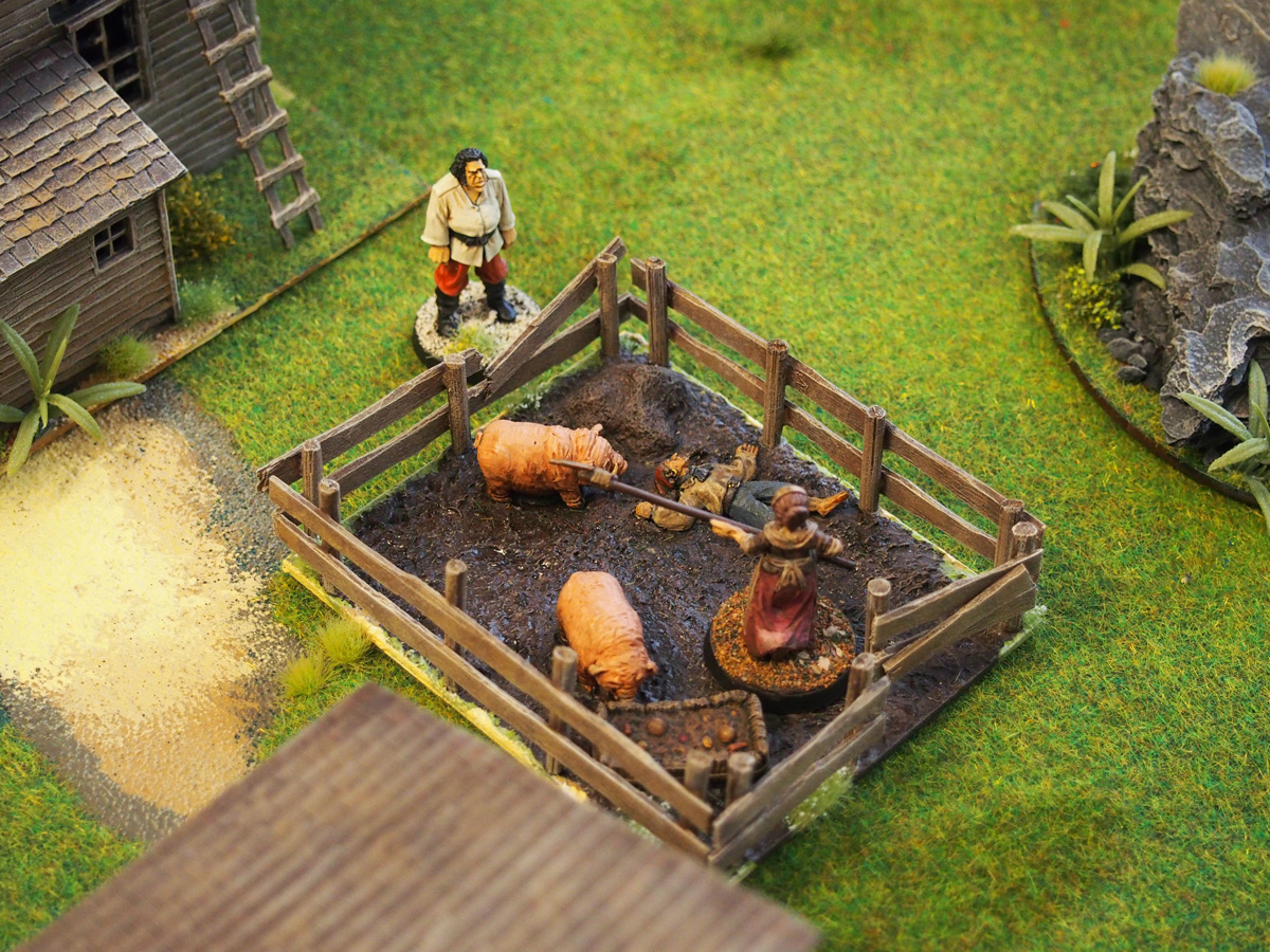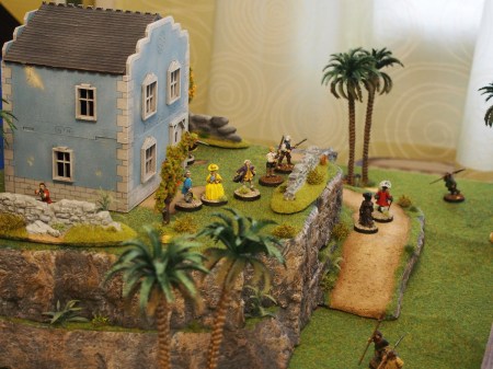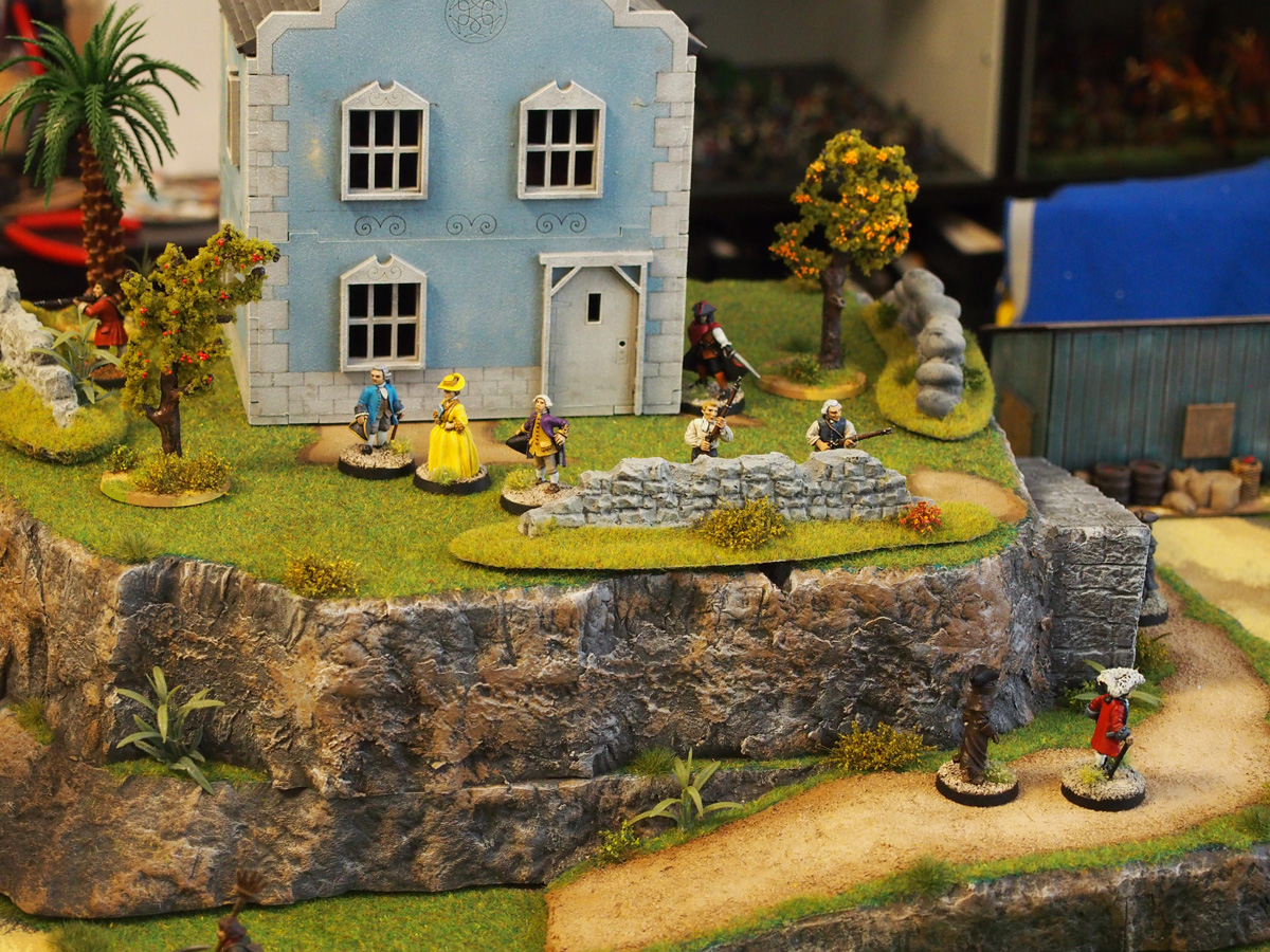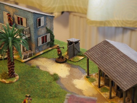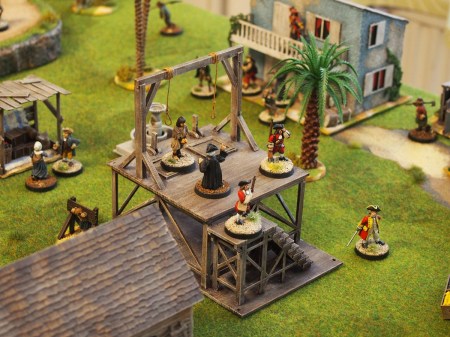 This year has been a weird one hobby-wise. On one hand, I must have painted less than 20 miniatures all year, which is very few even by my modest output standards. On the other hand, I’ve been fairly prolific with terrain – building a whole new pirate board for example. To showcase what I’ve done this year, I set up most of my pirate stuff on my new board for a major photo shoot. To be honest, this is what I’m mostly in the hobby for: I game very little, so the pirate project is more of a dollhouse thing than something for frequent gaming use. I think this goes back to old Citadel Journals, where dioramas with tens of minis were used to display the variety of miniatures available. Another, more recent example and a great inspiration has been the pirate gallery on War in 15mm.