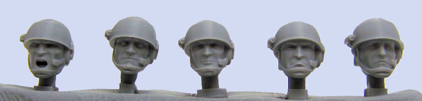 The heads come in a sprue of five different heads, although with some heads the expression differences are quite slight. The resin castings are very very crisp, with nothing to clean up. They’re instantly recognizable as Colonial Marines due to their distinct helmets with helmet cameras, mics and even the protective neck flaps. The pulse rifles are an amalgam of the Aliens design and a GW lasgun. Just like the heads, they are nice clean castings with no cleaning required. Everything is sculpted by Mr. Mad Robot himself, Steve Stodden.