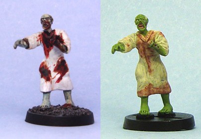 This tutorial will provide a quick and easy way to paint zombies to a good gaming standard. It leaves the painter room to embellish, too, while being easy enough for even a budding painter to produce fine results. So there’s a bit of something there for everyone. This style of painting is especially useful for some of the cheaper and rougher zombie miniatures on the market, but with a bit more attention works just as well for the classier ones too.