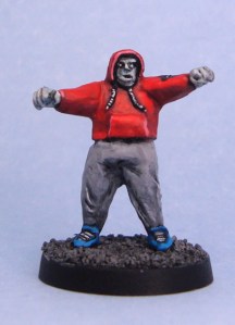 The principle? Zombies – whether you’re painting modern or fantasy models – are just regular people, with the notable exception of being dead. Hence, their clothing and equipment will paint up just like it would on any other model. Where the whole zombie-thing kicks in, is the whole ”dead” part.
