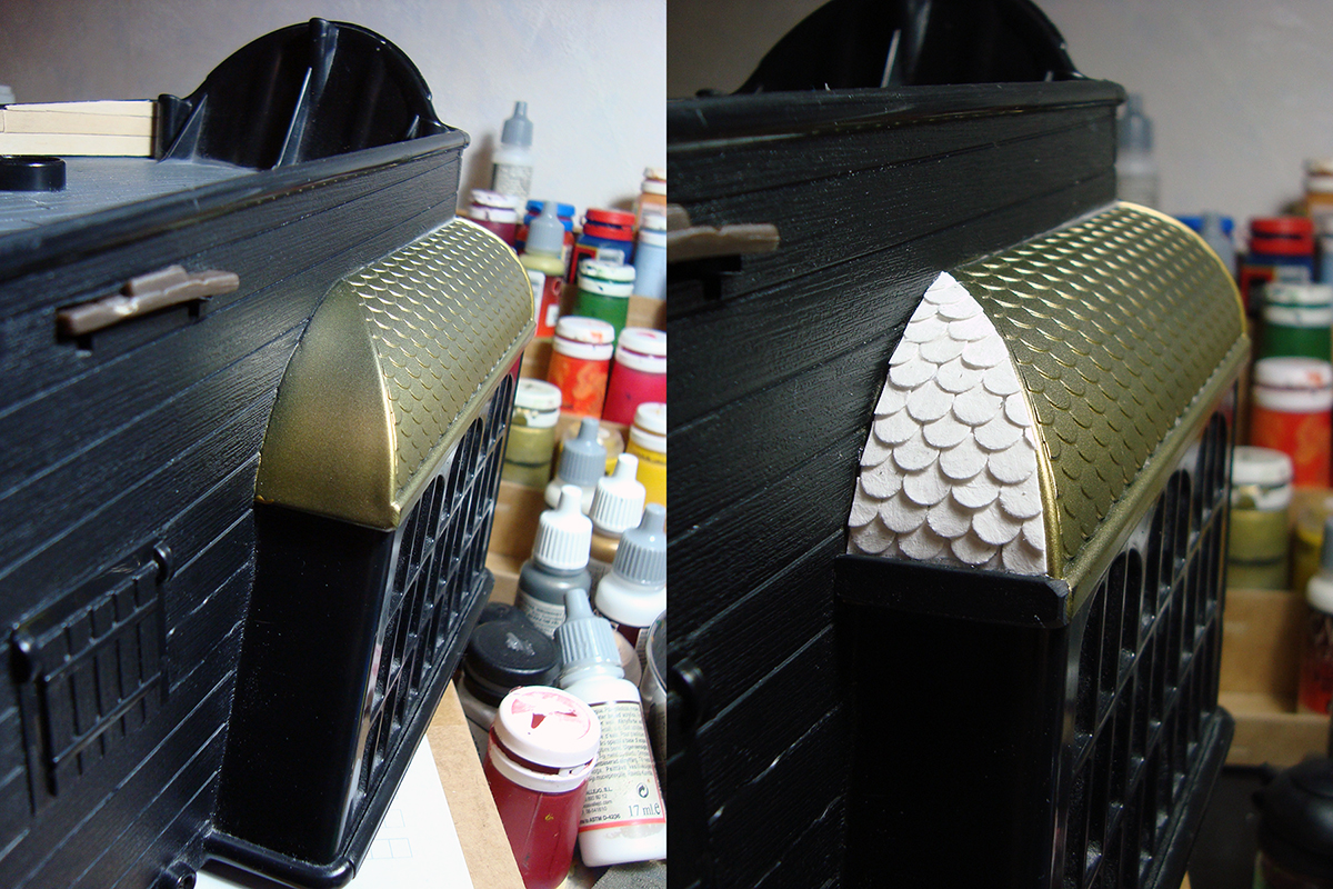 Cagafuego is a huge piece, and I’m thinking that its role on the ship is that it’s a piece mainly for intimidation. Due to the build of the ship and for practical reasons, it’s only going to carry some seven cannon altogether – much fewer than a ship of this size historically would have. Of these seven, six will be normal sized and Cagafuego much larger, so I’m thinking that it’s always a bit of a spectacle when it’s utilised. You know: