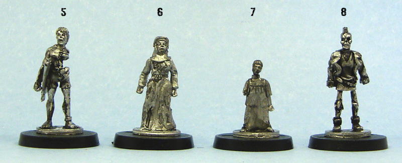 Model #7 – Altar Boy adds to the too-slowly growing number of zombie children miniatures available. The sculpt is simple and flat, with the only damage being a missing right arm. Come to think of it, I don’t think I’ve seen a zombie kid sporting a lot of damage. Maybe it’s just the size of the sculpt, or is the subject still a bit taboo? This little altar boy combined with the nun and vicar above should be proof enough that religion simply won’t keep you from being eaten by the undead.