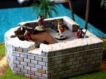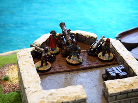 A little over a year back I got in on the Slug Industries Spanish fort Kickstarter and I’m happy to report that I’ve finally finished one of the pieces from it – a separate gun battery. I think the gun battery is a very iconic part of Caribbean pirate imagery, guarding those ports and looking menacing.