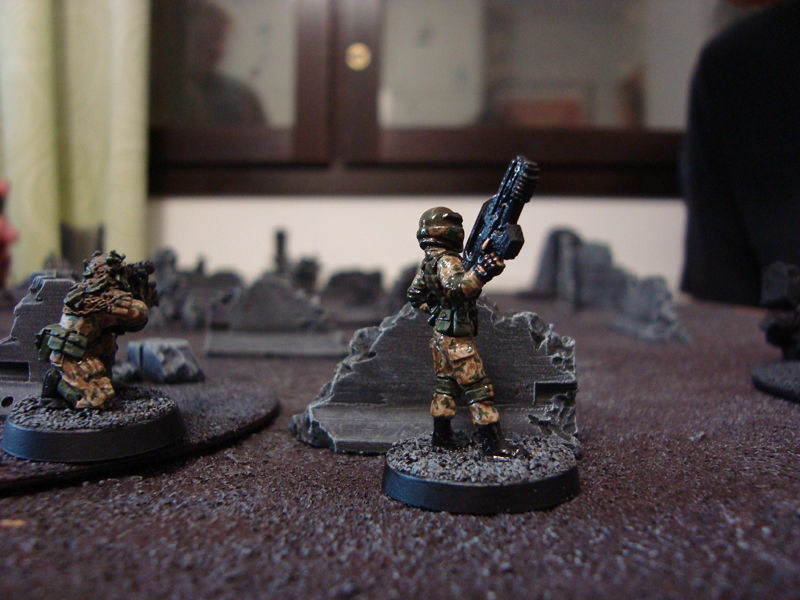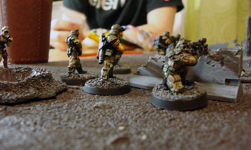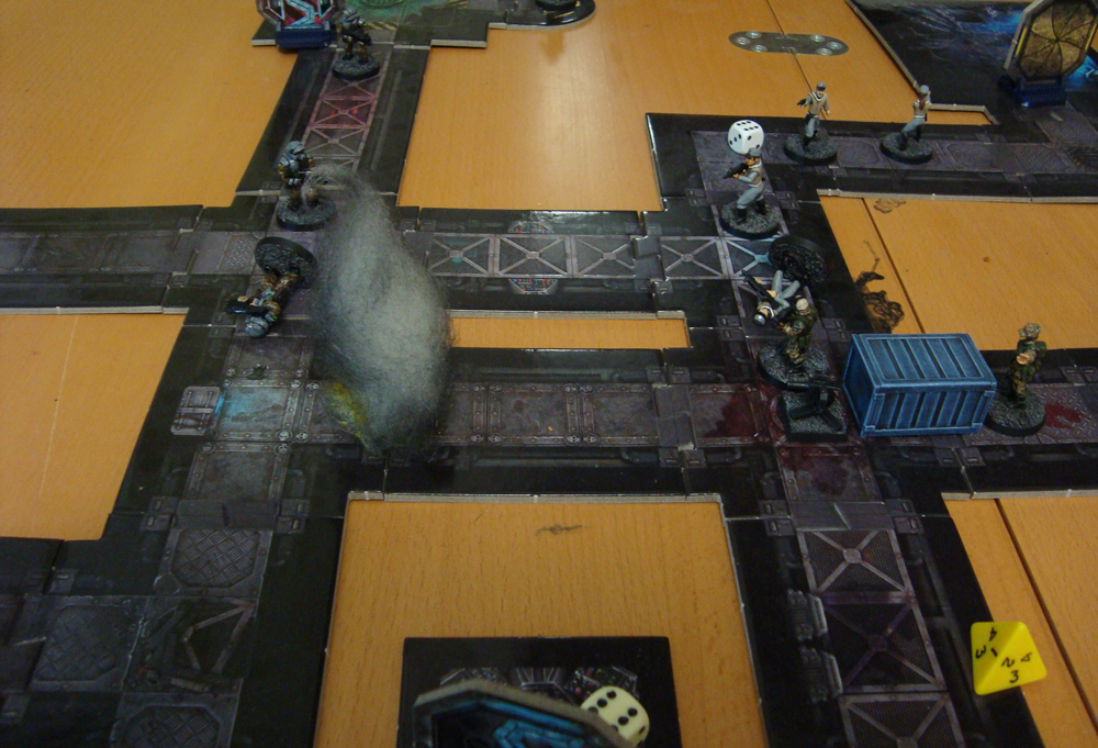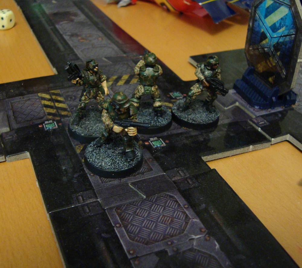 Man oh man, am I happy. After four months of inactivity, I had my doubts about the survival of this campaign. A much shorter delay has killed games before, and Utopia is my beloved pet. I was super happy to see that my fears were for nothing, as we quickly got into the groove again despite one of my three players dropping out at the last minute due to illness. After the first few rounds the players again remembered their characters and their personalities, and we once again got to grips with the rules. The game was as cinematic as before, and after the game we heaped praise on Flying Lead by Ganesha Games. The simple mechanics allow for quick and easy modification, and we came up with a lot of special rules on the spot, such as grenade explosions clouding the corridors with smoke, sentry guns and their malfunctions and Jane’s programming glitches – there was a very real chance of Jane actually firing on the the hapless Heavy infantry trooper, and when he was swatting aside the Outer colonies troopers, sheer luck stopped them from being injured.