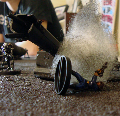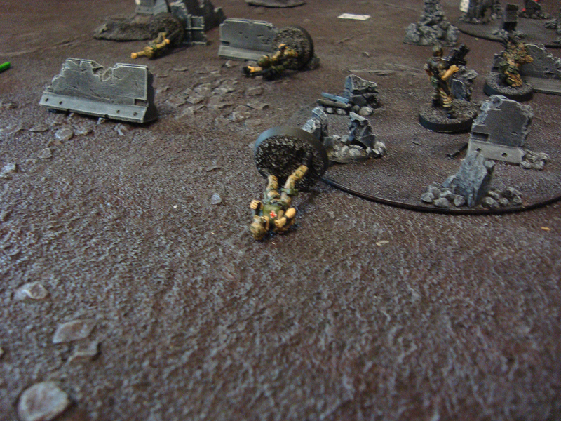 Disaster struck the attackers just as they were about to break through the defenses. The last sentry gun had malfunctioned, and Sgt. Mancala pulled the pin from a grenade and turned to throw it at the defenders, when the gun suddenly came back to life thanks to Pvt. DiGlaeser’s technical aptitude. Mancala hurriedly pulled back but fumbled with the grenade which fell at his feet, blowing up the sergeant and knocking nearby trooper Kaneda down. On the brink of breaking the defenders, the attack collapsed and the attackers pulled back, leaderless. With the Union of Terra fleet approaching, the defenders were suddenly close to winning.