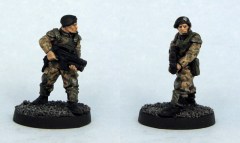 Mark Copplestone has sculpted loads and loads of futuristic not-CMs, and they’re sold through at least three different companies. Copplestone’s own company has a wide range of around ten packs of five miniatures each. All kinds of troopers are available, with different gear options and weapons. There’s a pack of five female troopers for a nice piece of variety, as well as specialists and officer types. The sculpts are clean and paint up nicely, and the casting quality is fine as well. The models stand on small, thin integral bases.